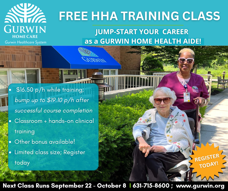 Earn while you learn to be a licensed Gurwin Home Health Aide! Free HHA paid training classes are starting July 21st! Jump start your HHA career at Gurwin. Register today!